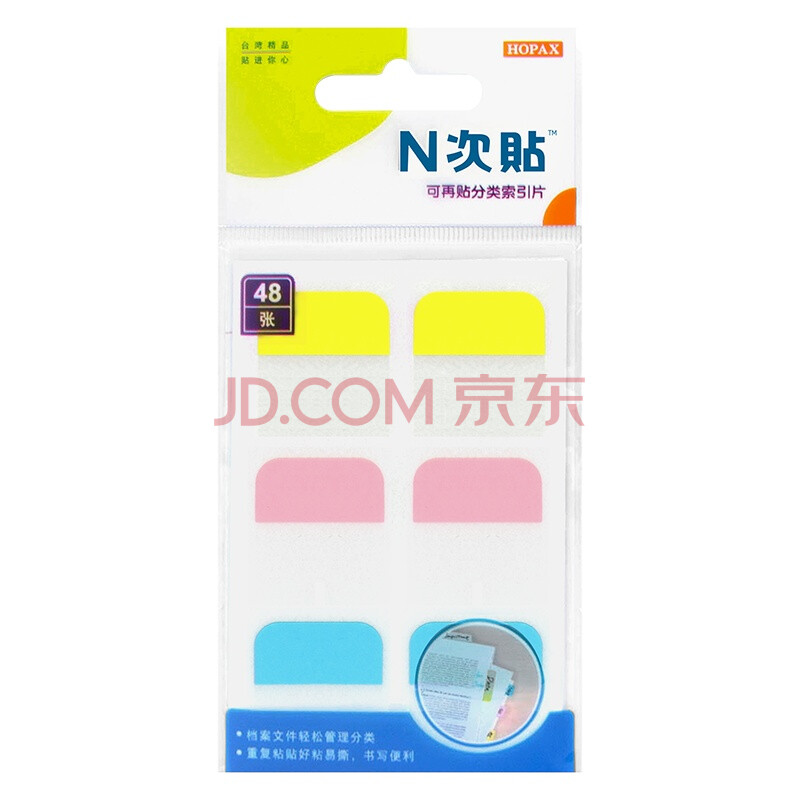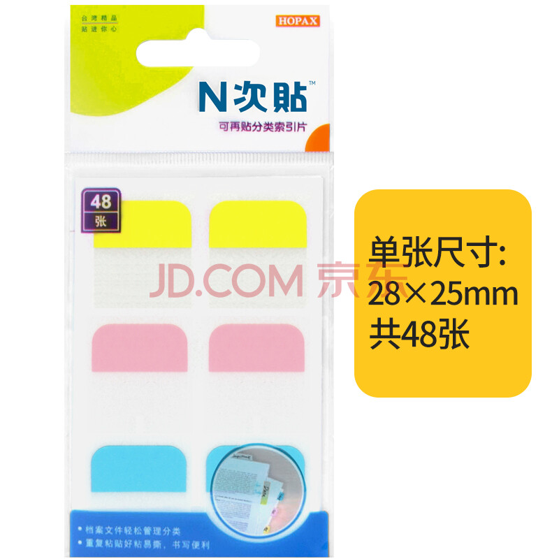 商品相册:N次贴(STICKN)荧光指示标签贴分类便签纸便利贴索引片25*28mm 纸标头易书写48枚3色34044第