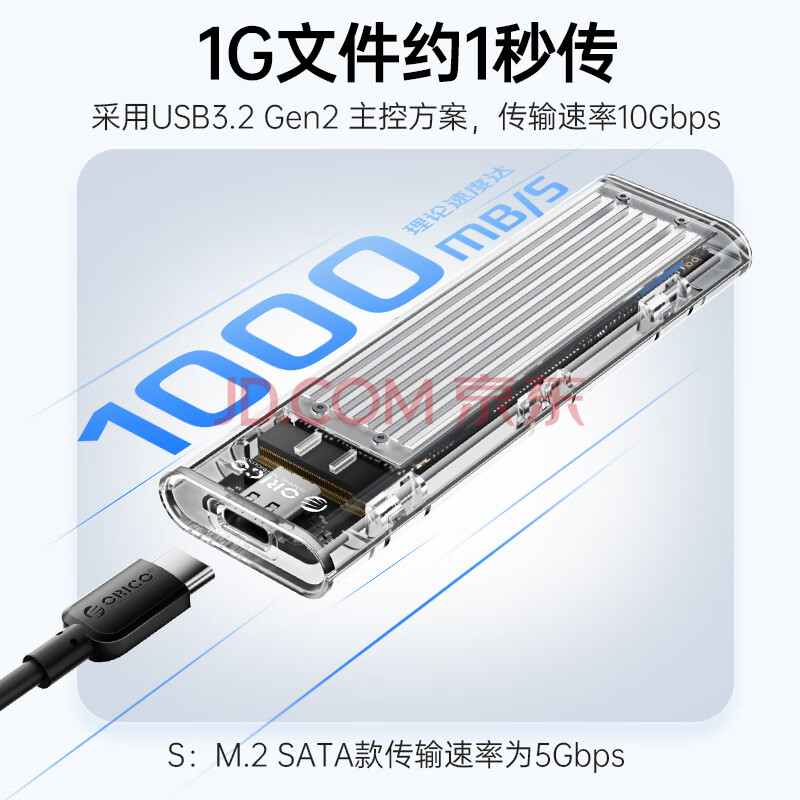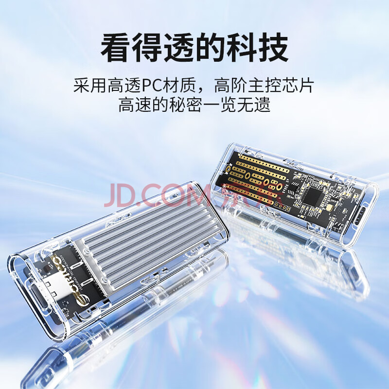商品相册:奥睿科M.2 NVMe固态硬盘盒10Gpbs Type-C接口SSD外置盒 适用笔记本电脑 透明金属/银色 TCM2-C3第