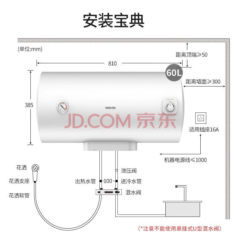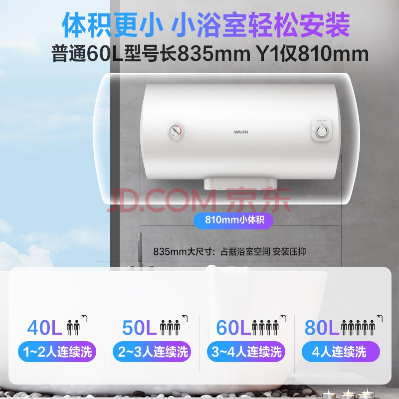 商品相册:美的华凌 60升电热水器2100W大功率 经济节能保温型安全防电墙 蓝钻内胆3年整机F6021-Y1【企业专享】第