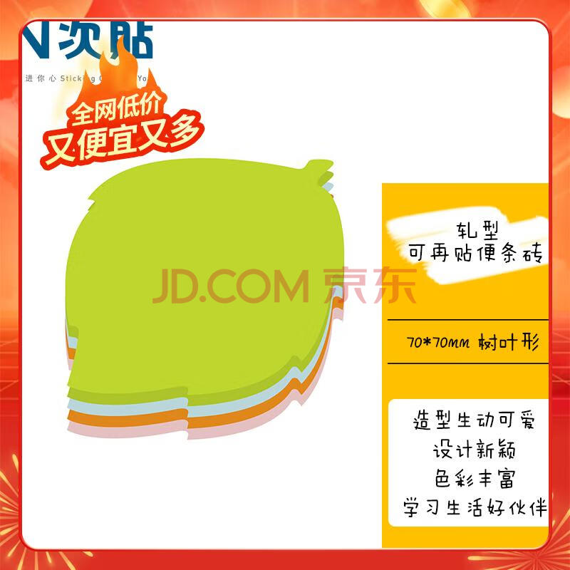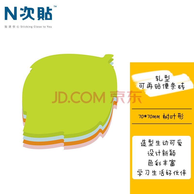 商品相册:N次贴(STICKN)160张4色可爱造型便利贴异形便签纸百事贴记事贴70*70mm 树叶形33013第