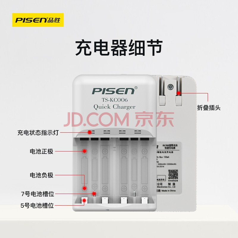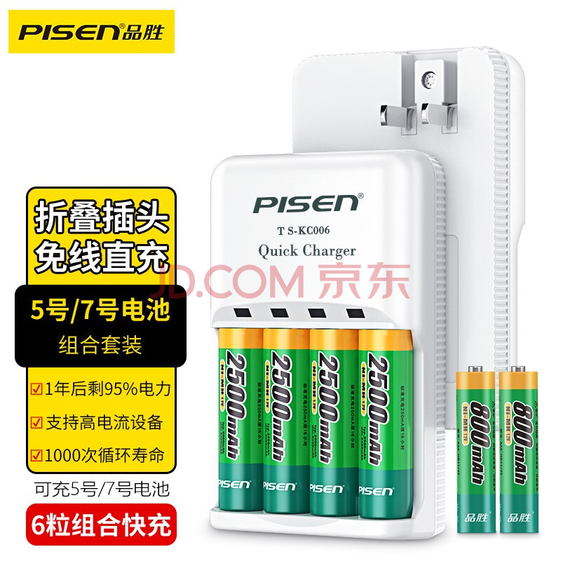 商品相册:品胜 充电电池5号/7号 五号AA/七号AAA电池充电器 适用键鼠/话筒/遥控器/玩具车/相机 6粒快充套装第