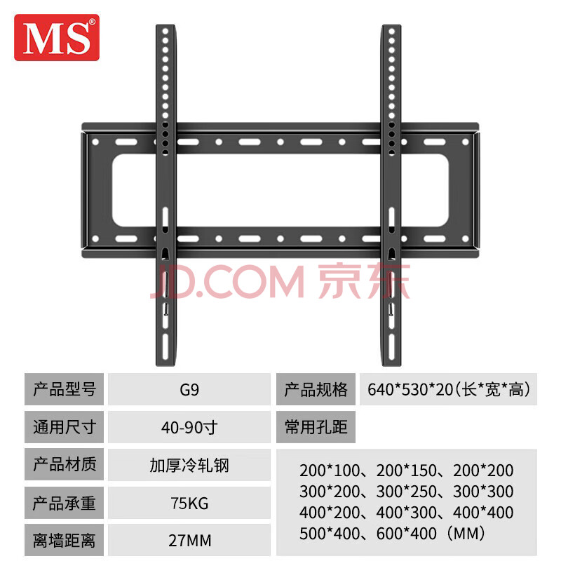 商品相册:MS(40-90英寸) 液晶电视机挂架固定支架加厚壁挂架电视架子通用小米荣耀智慧屏海信飞利浦G9第