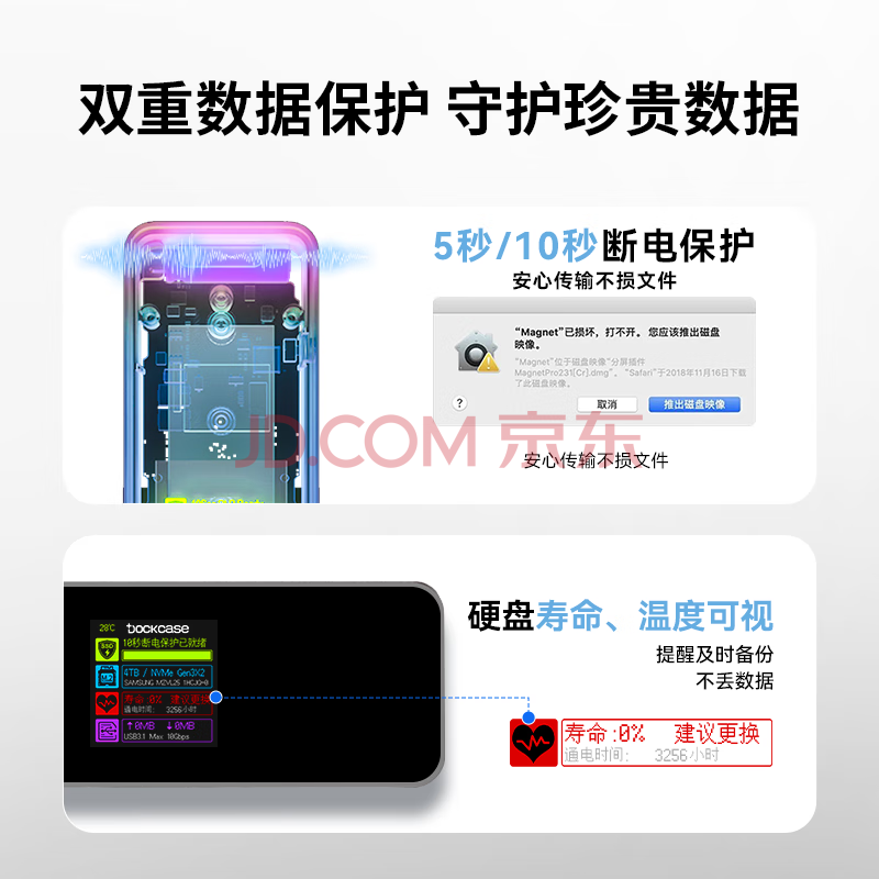 商品相册:DOCKCASE多凯斯智能可视化M.2固态硬盘盒Type-C外置硬盘盒NVMe SSD读取器适用iPhone17 ProMacBook外接扩容第