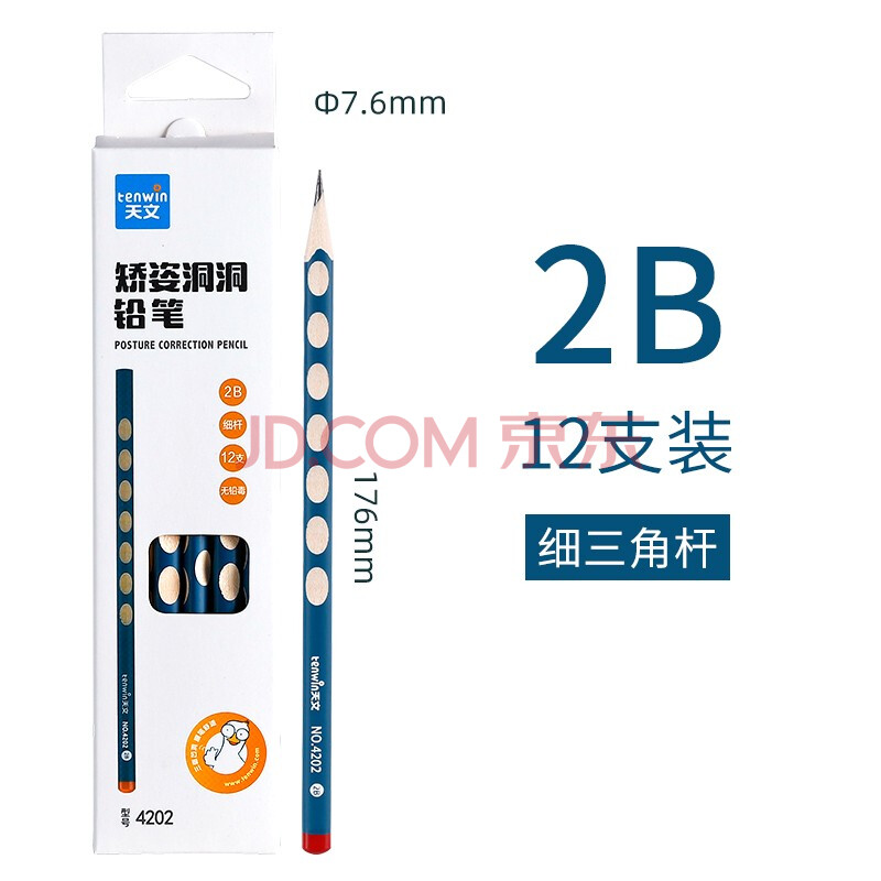 商品相册:天文(TEN-WIN)学生文具洞洞铅笔2B儿童三角形铅笔小学生用12支/盒装4202第