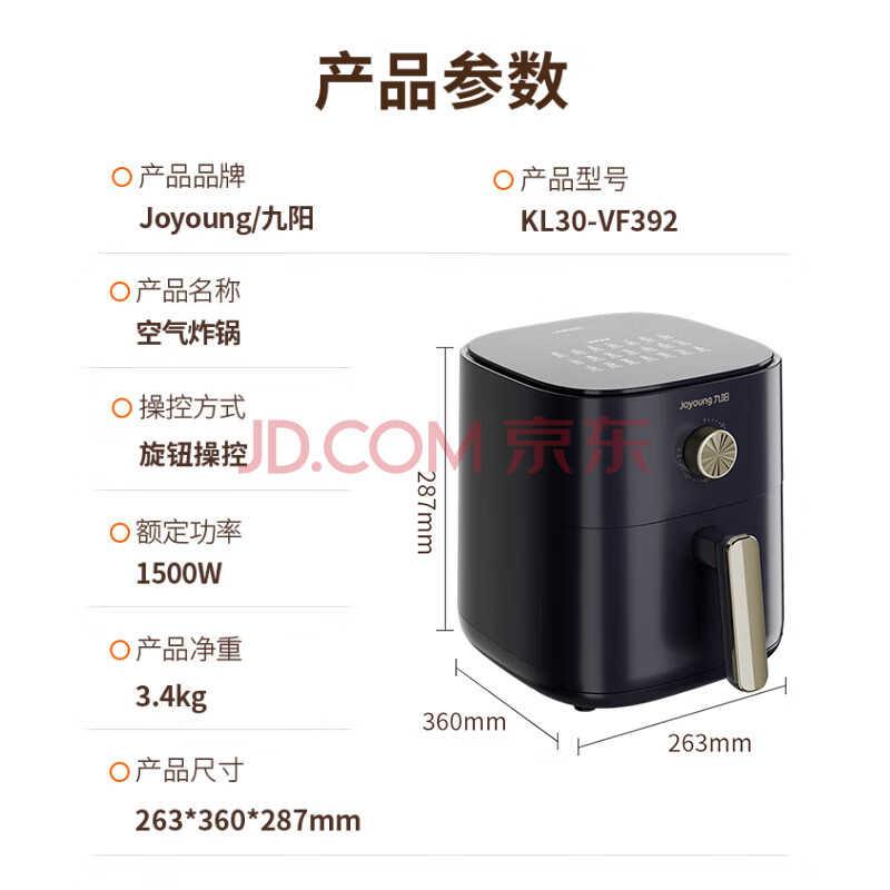 商品相册:九阳(Joyoung)家用智能多功能5L无油电炸锅1500W不沾易清洗空气炸锅第