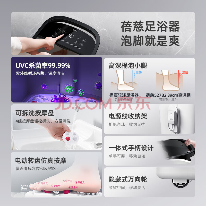 商品相册:蓓慈(beici)杀菌泡脚桶自动加热按摩足浴盆洗脚盆泡脚盆高深桶送父母送长辈男女友生日礼物B2第