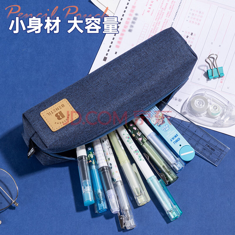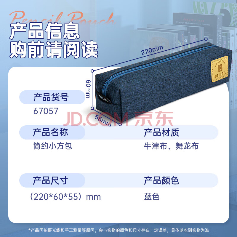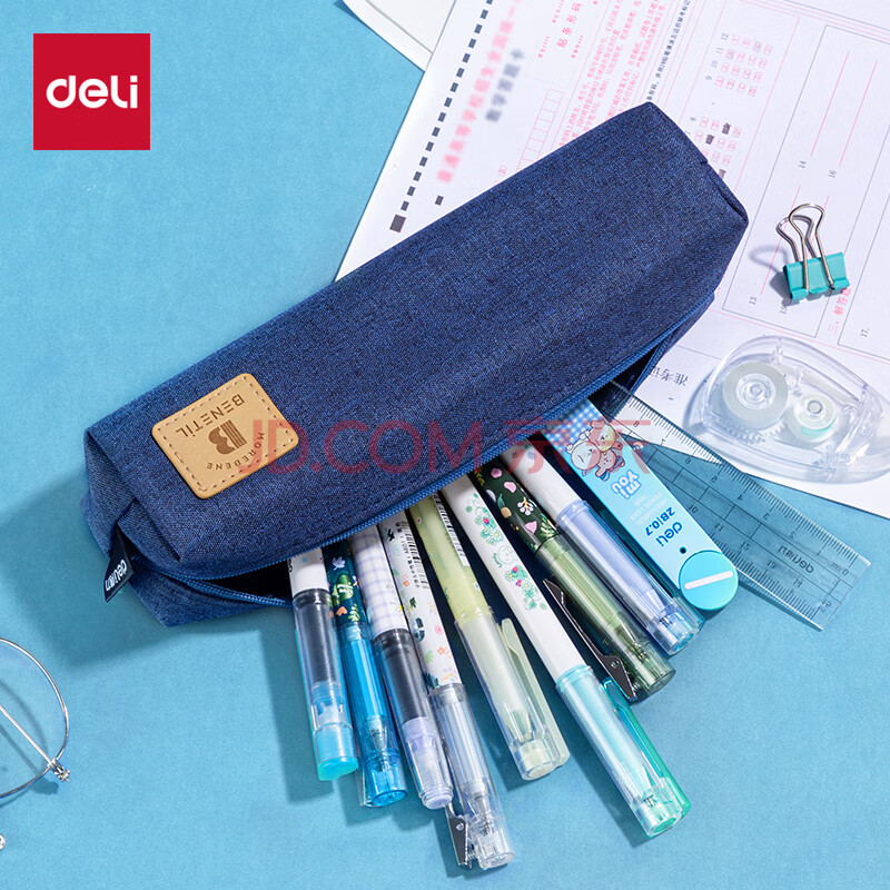 商品相册:得力(deli)笔袋小学生 大容量简约小方包 多功能学生文具盒/铅笔盒 文具收纳盒 蓝色开学必备第