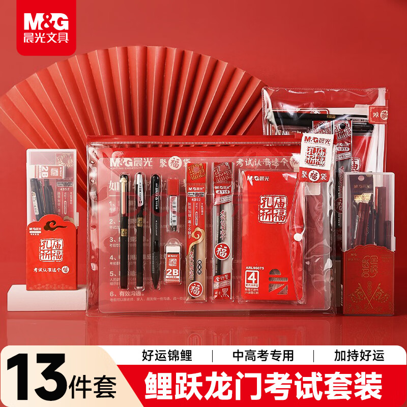 商品相册:晨光(M&G)孔庙祈福系列考试专用透明套装 中性笔+替芯+垫板+涂卡2B铅笔+套尺+橡皮 国考中高考专用13件套第1张/共8