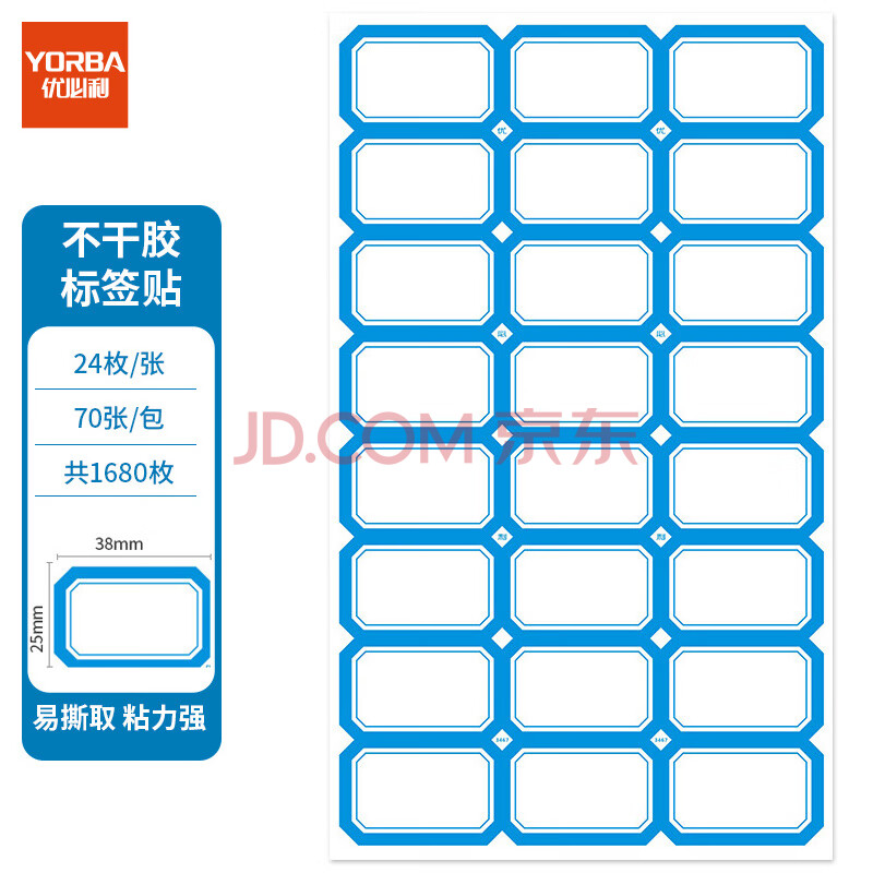 商品相册:优必利 1680枚38mm×25mm不干胶标签贴纸自粘性标贴 口取纸 24枚/张 70张/包 3467蓝色第