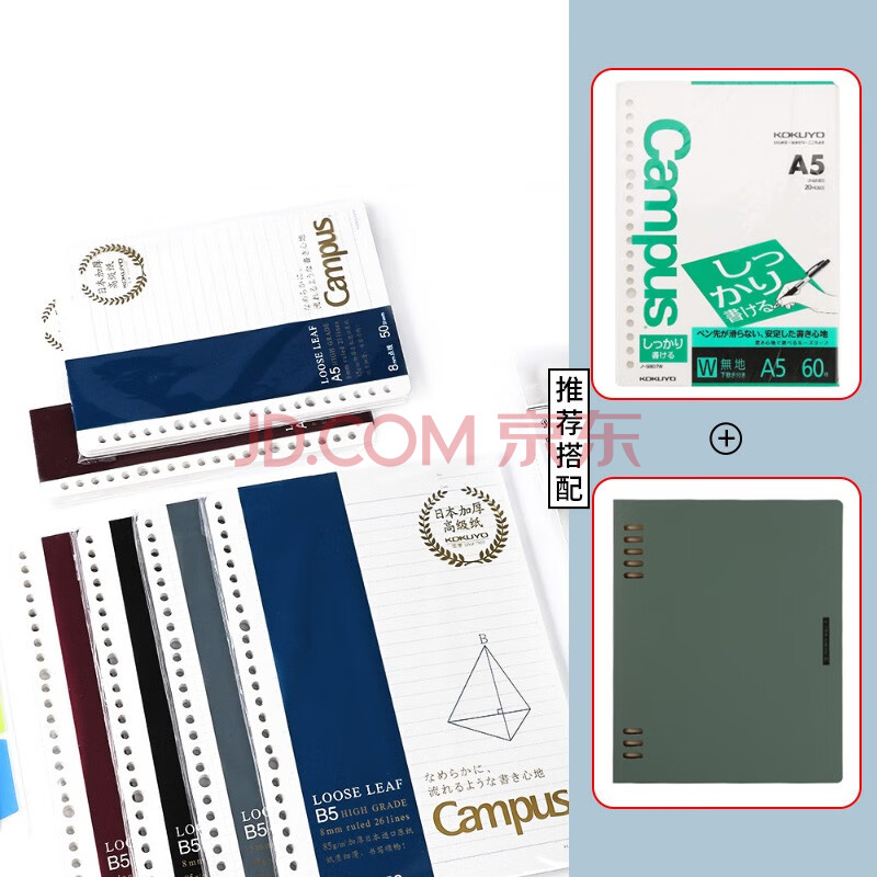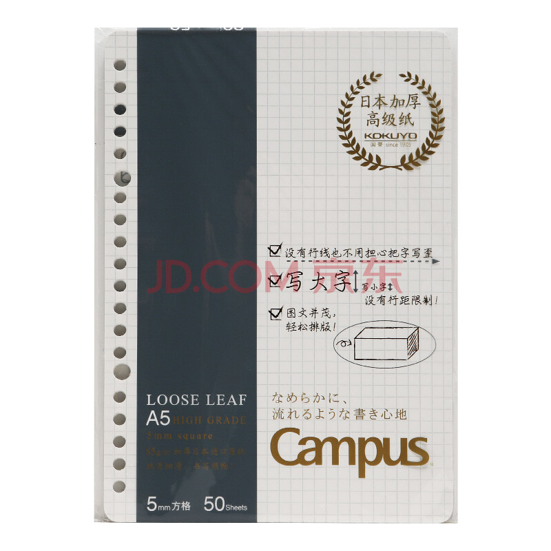 商品相册:国誉(KOKUYO)A5活页纸Campus活页本替芯笔记本子活页纸内页·高级型 5mm方格 50张1本 WCN-CLH3514第