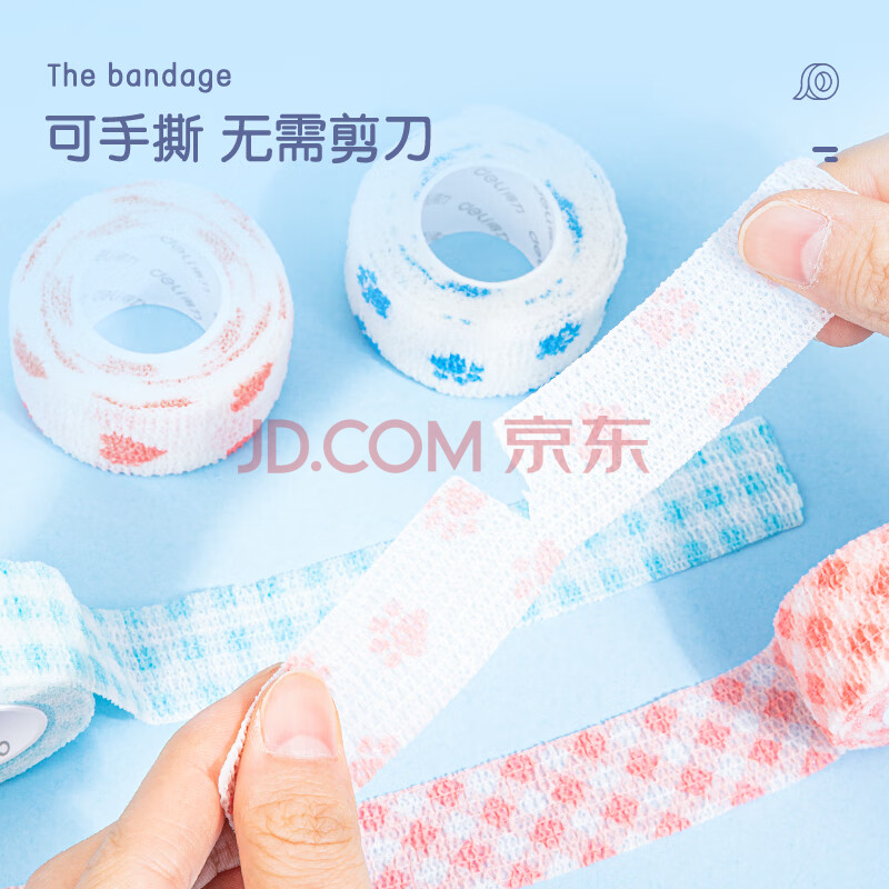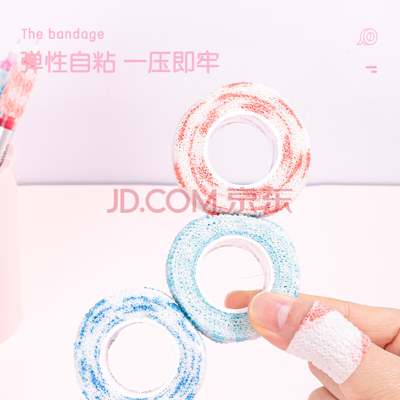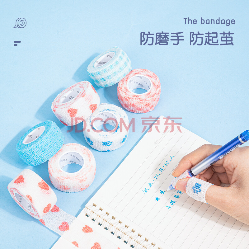 商品相册:得力(deli)学生写字护指绷带 防磨防茧自粘弹性绷带 关节护指套25mm*4m 3卷装 混色30601第