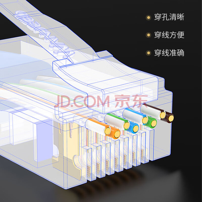 商品相册:万级六类水晶头工程级直通穿孔式网线接头 CTA6类千兆网络连接器 50U纯铜镀金10个装WJ-15231第