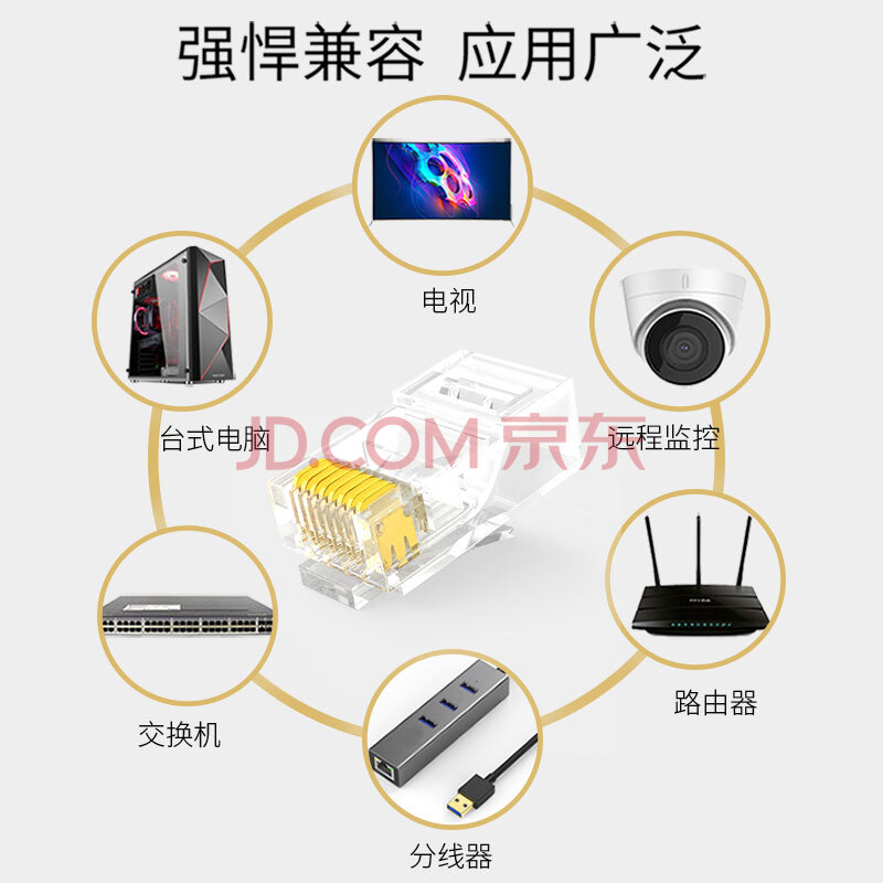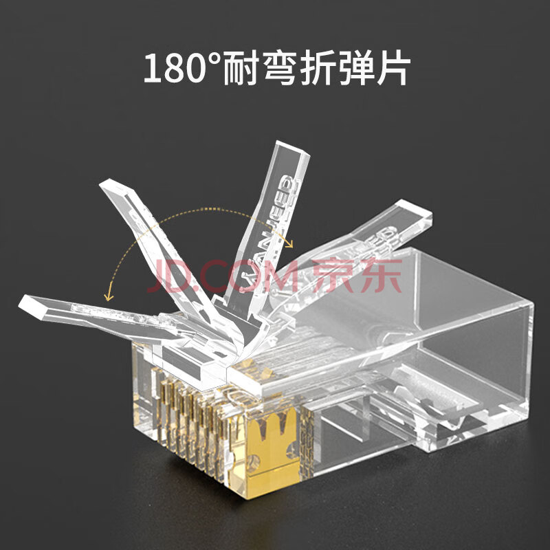 商品相册:万级通孔水晶头六类工程级8P8C直通穿孔式镀金水晶头50U Cat6类千兆网络连接器30个装WJ-15231第