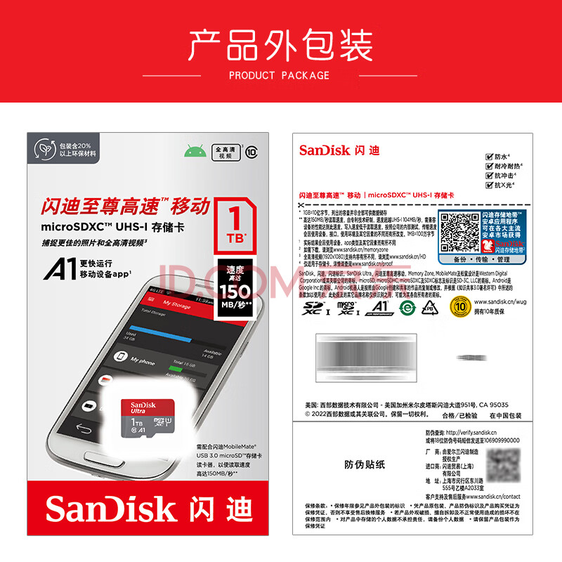 商品相册:闪迪(SanDisk)1TB TF(MicroSD)内存卡 A1 U1 C10 至尊高速移动版存储卡 读速150MB/s 手机平板游戏机内存卡第