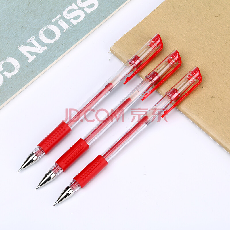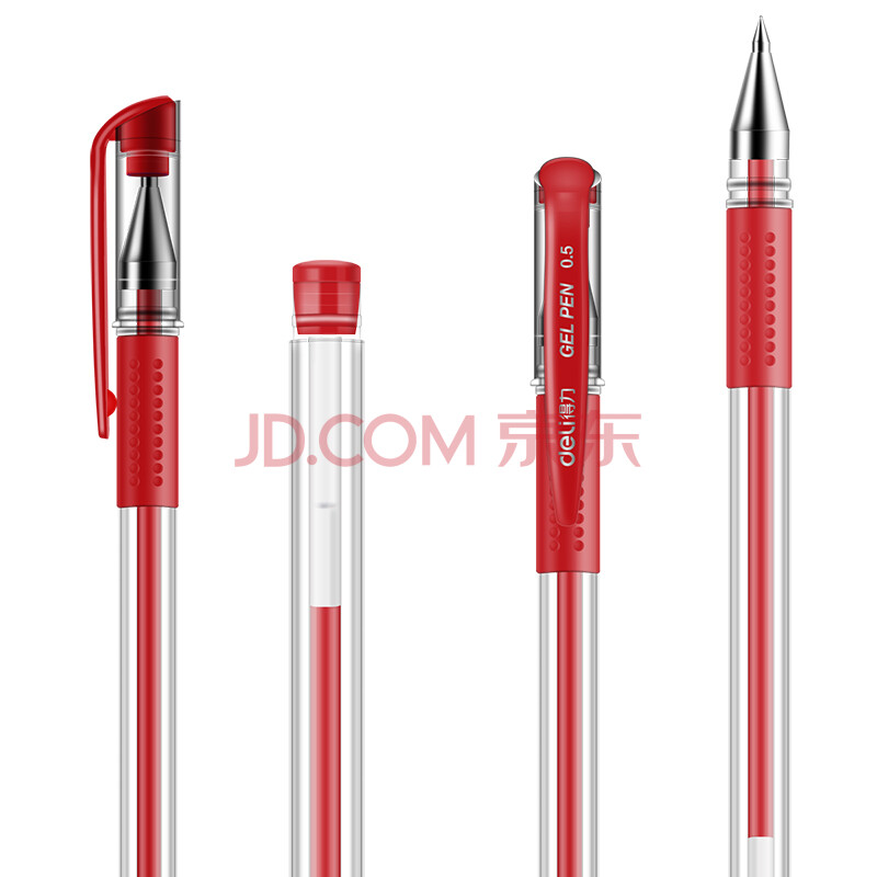 商品相册:得力(deli)0.5mm经典办公中性笔签字笔 子弹头红色12支/盒第