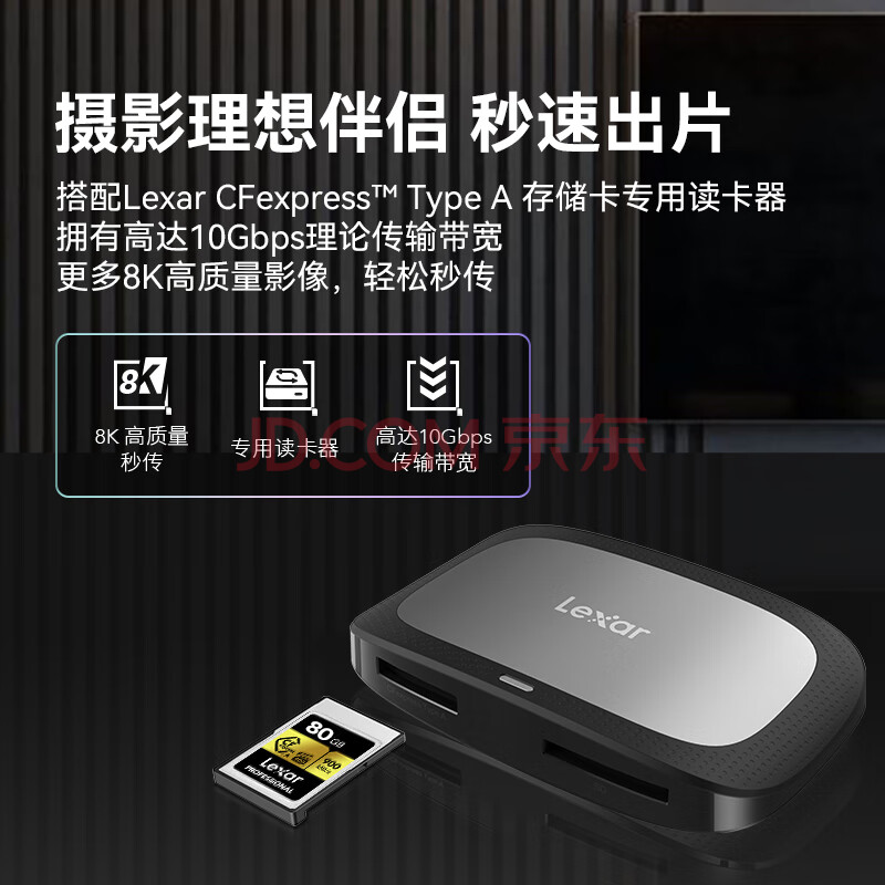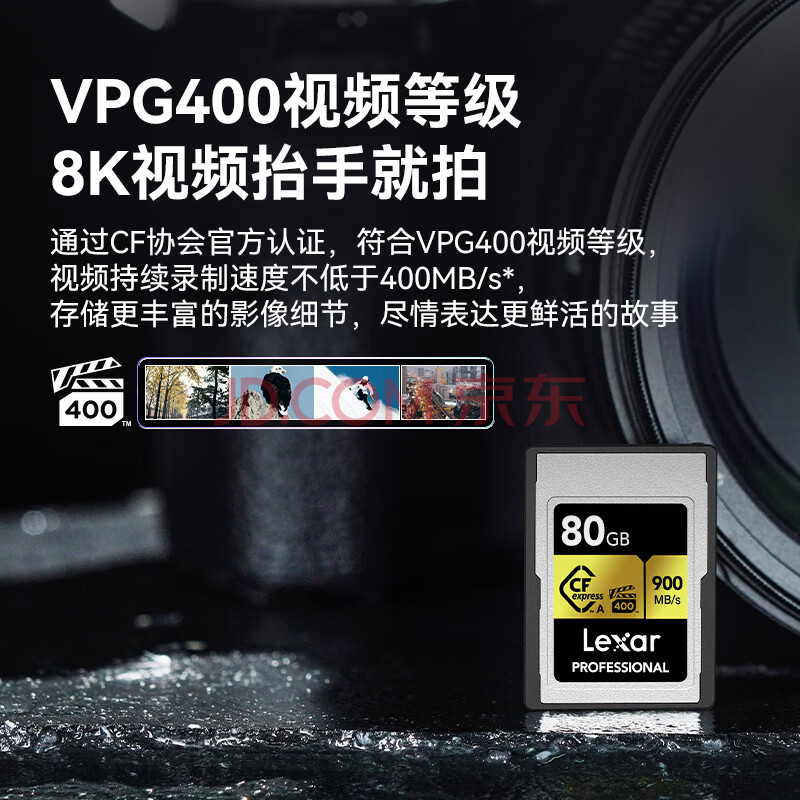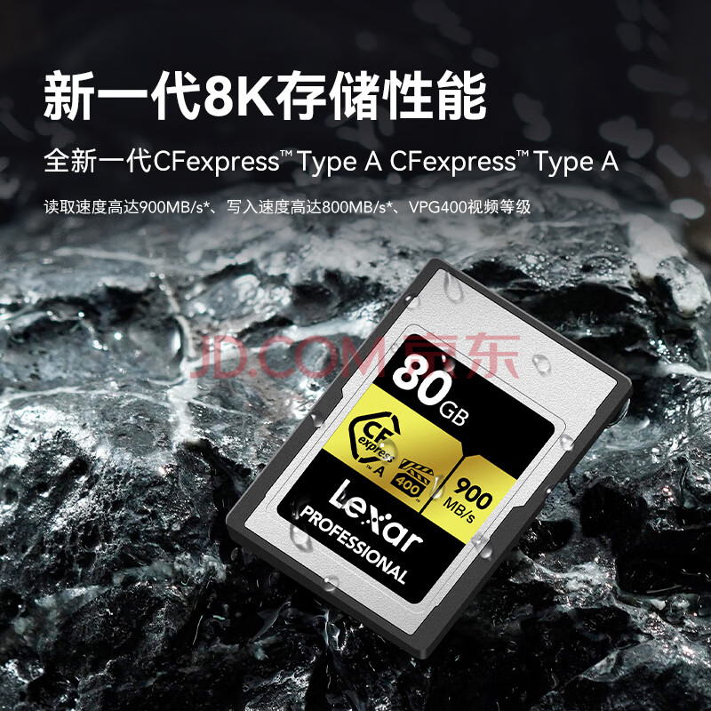 商品相册:雷克沙(Lexar)80GB Cfexpress Type A存储卡 VPG400 8K录制 索尼相机专用cfa卡 读900MB/s(GOLD)第
