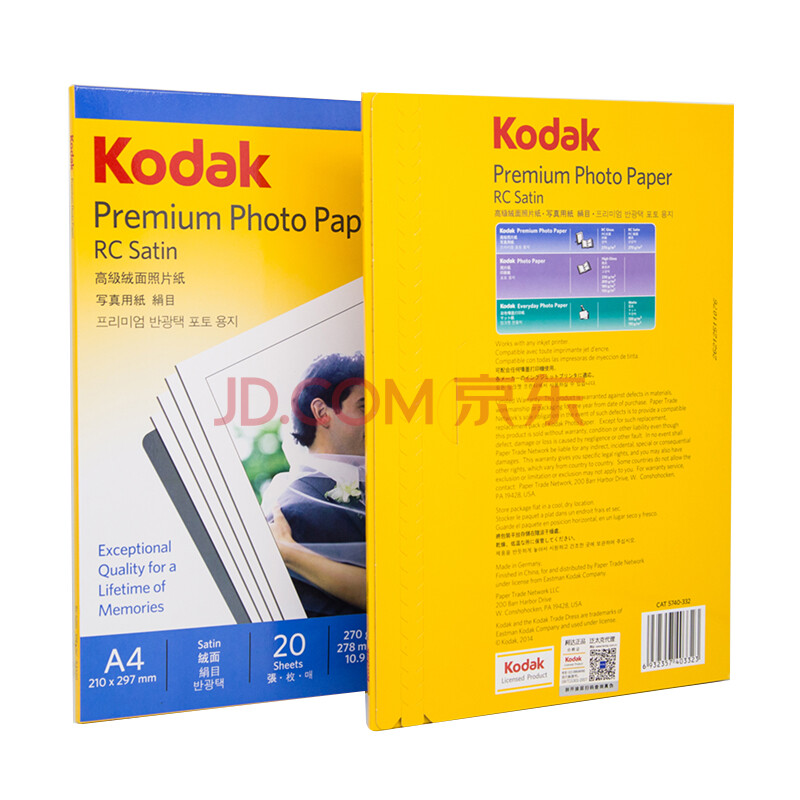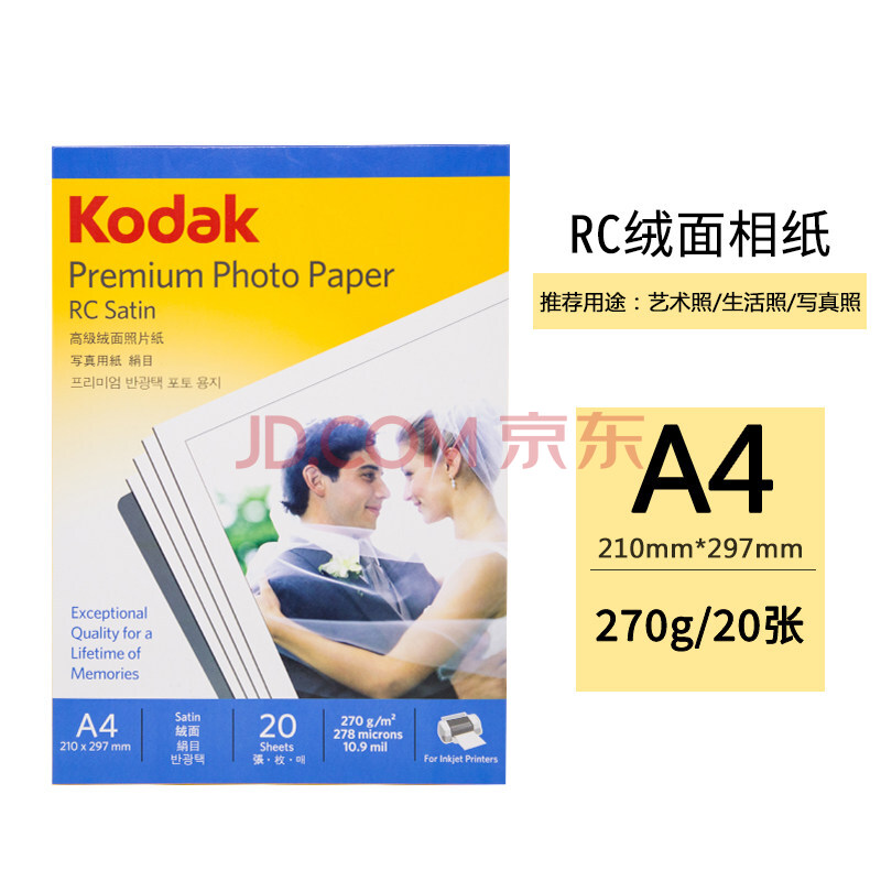 商品相册:KODAK柯达 A4 270g绒面RC防水相纸/喷墨打印相片纸/相纸 20张装 5740-332第