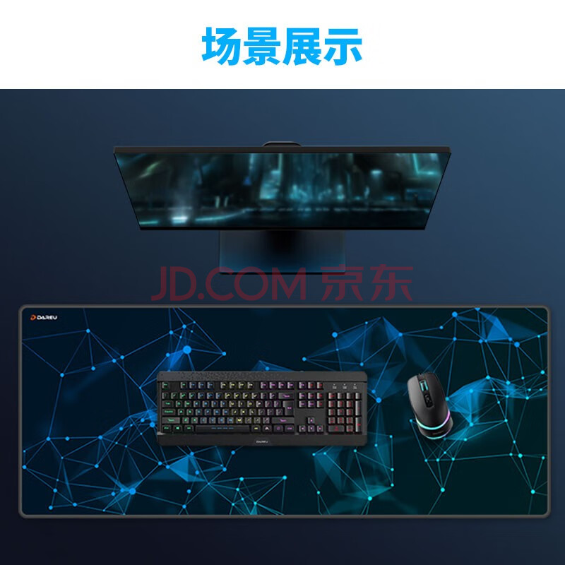 商品相册:达尔优游戏电竞鼠标垫 fps顺滑加厚精密锁边 电脑键盘办公超大号桌垫 粒子1000*400*3mm第