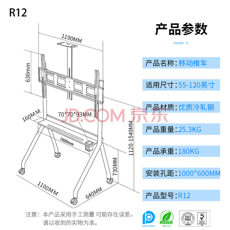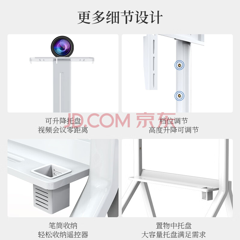 商品相册:ProPre 55-120英寸电视机移动推车 视频会议电视挂架 广告机商显屏电视支架教学机一体落地支架挂架-白色第