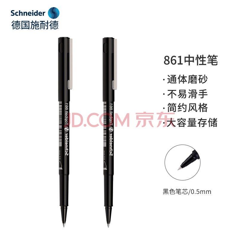 商品相册:施耐德(Schneider)中性笔0.5mm学生考试成人办公签字笔直液式子弹头水笔开学必备用品 861黑杆2支装第