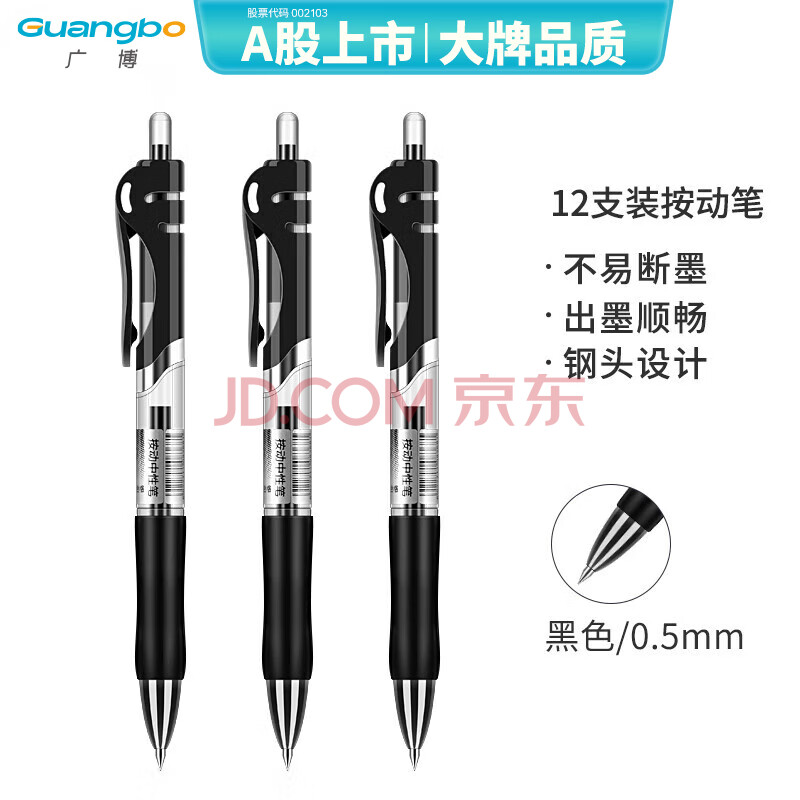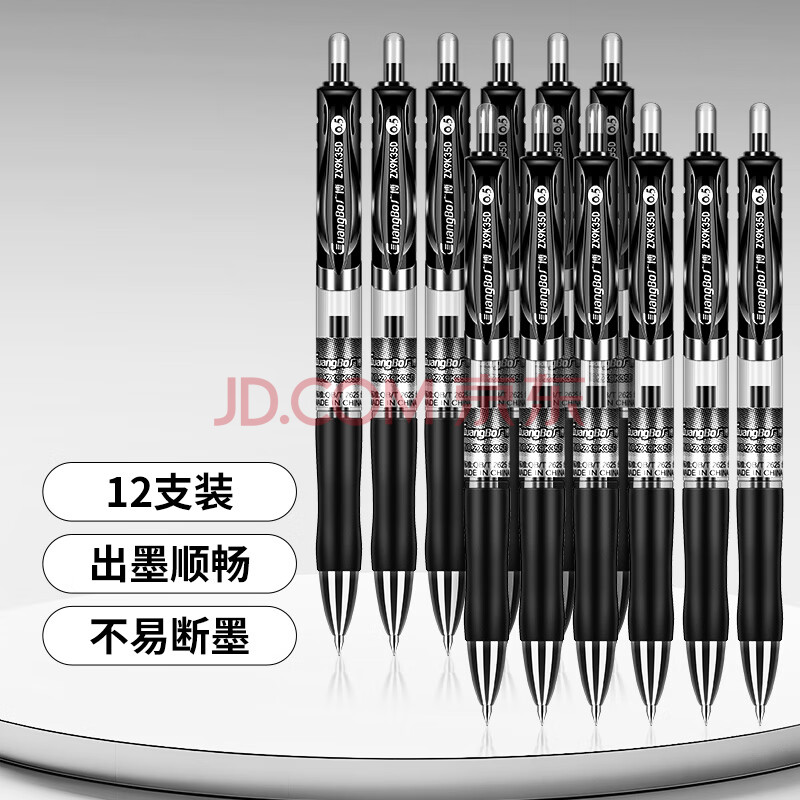 商品相册:广博(GuangBo)中性笔 0.5mm子弹头经典办公按动签字笔 学生用水笔按动笔 黑色12支/盒 开学文具用品ZX9K35D第