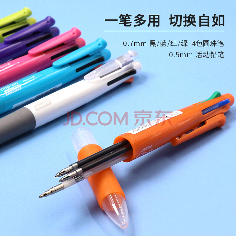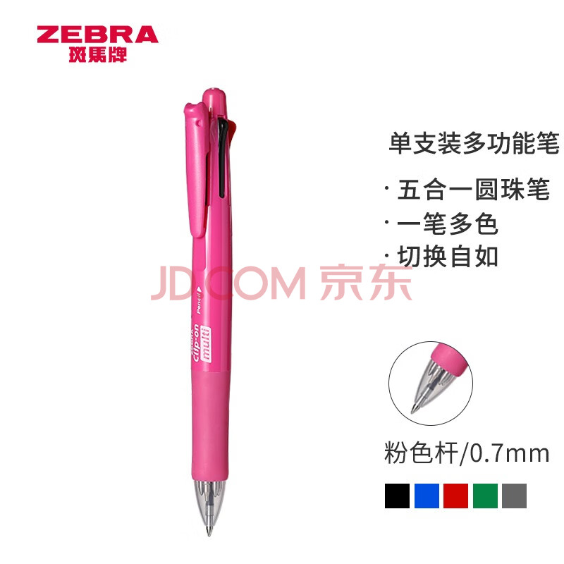 商品相册:斑马牌(ZEBRA)五合一多色笔(0.7mm四色圆珠笔+0.5mm自动铅笔)黑蓝红绿学生商务办公签字笔B4SA1 粉色杆第