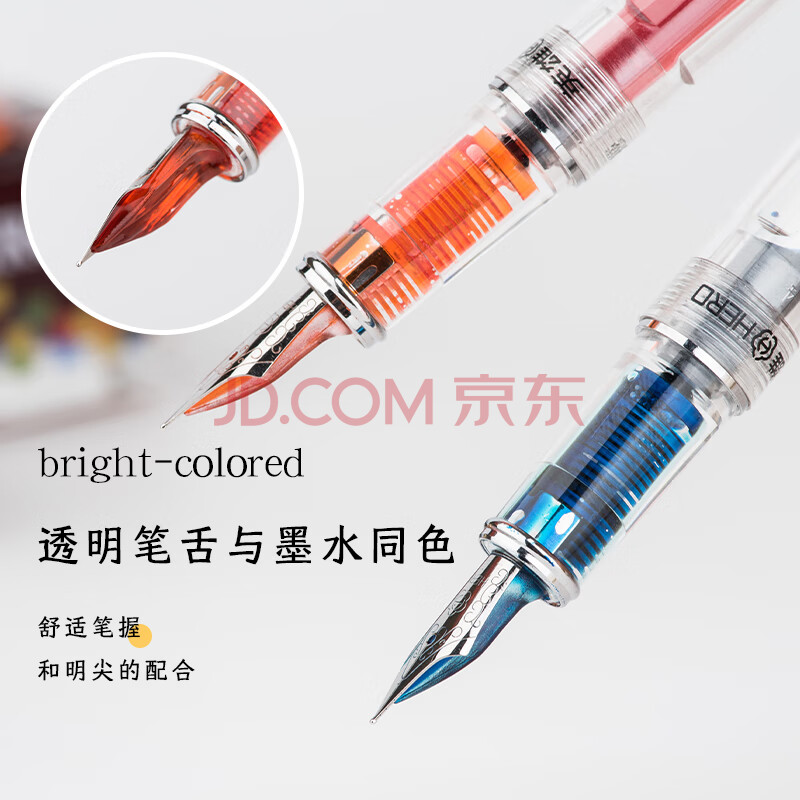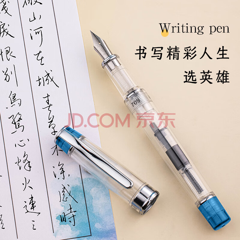 商品相册:英雄(HERO)钢笔709心水透明铱金钢笔学生墨水笔练字笔透蓝第