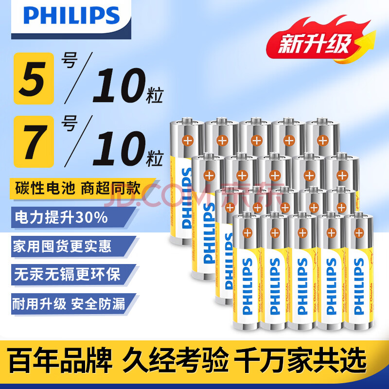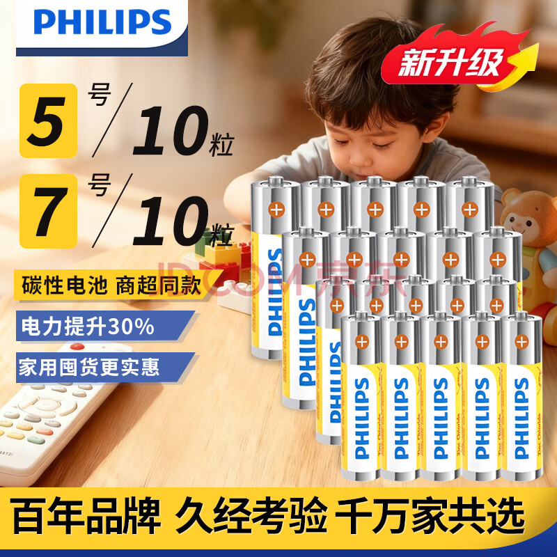 商品相册:飞利浦(PHILIPS)碳性5号电池7号电池各10粒/20粒干电池适用遥控器/钟表/电子称/计算器/闹钟/耳温枪七号电池5号第