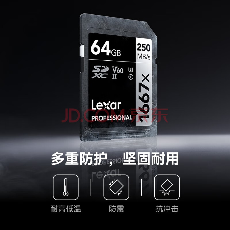 商品相册:雷克沙(Lexar)64GB SD存储卡 U3 V60 4K数码相机内存卡 读250MB/s 写120MB/s 双排金手指(1667x Pro)第