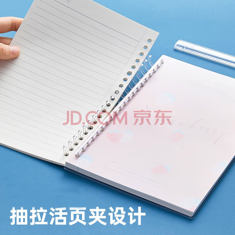 商品相册:文谷(Wengu)活页本子可拆卸替芯笔记本记事本线圈本80页横线内芯20孔手账本小清新草莓乐园PL002-A5-A第