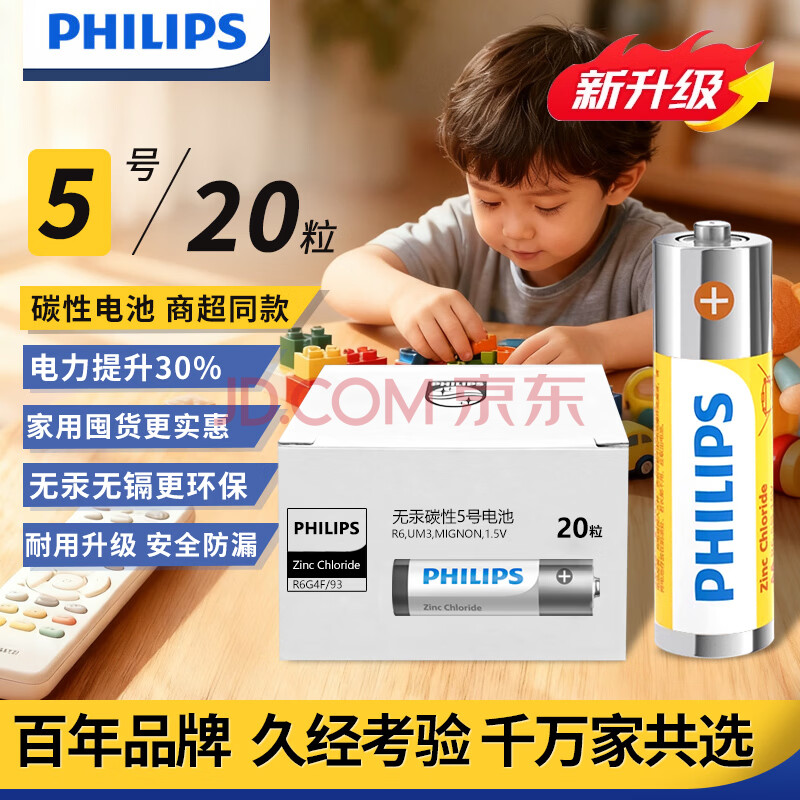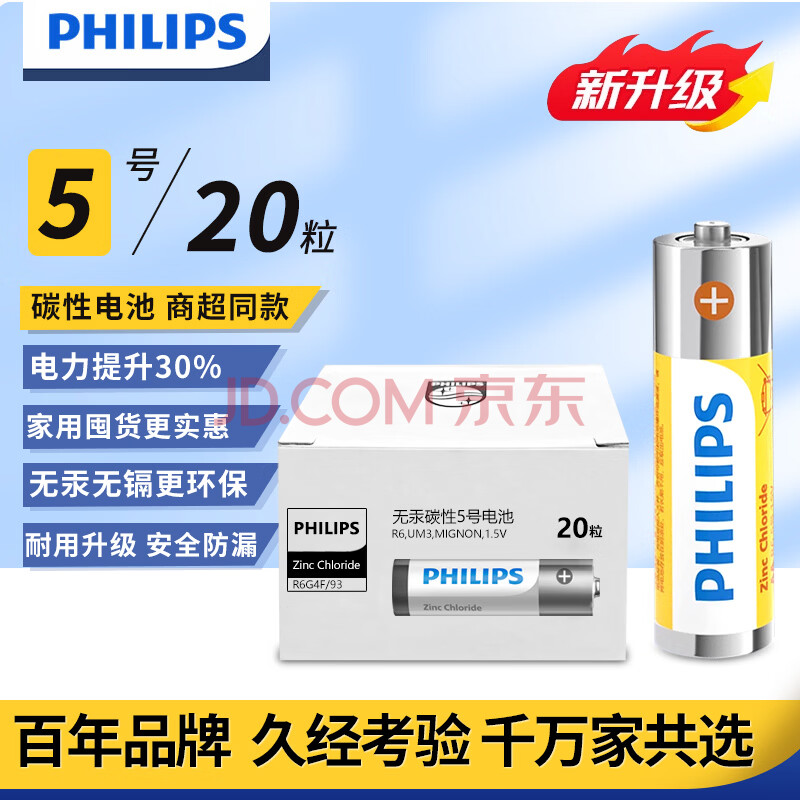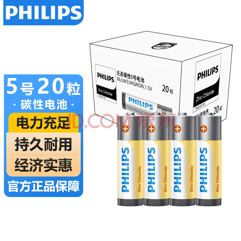 商品相册:飞利浦(PHILIPS)碳性5号电池20粒干电池适用遥控器/钟表/电子称/计算器/闹钟/耳温枪五号电池AA R6第