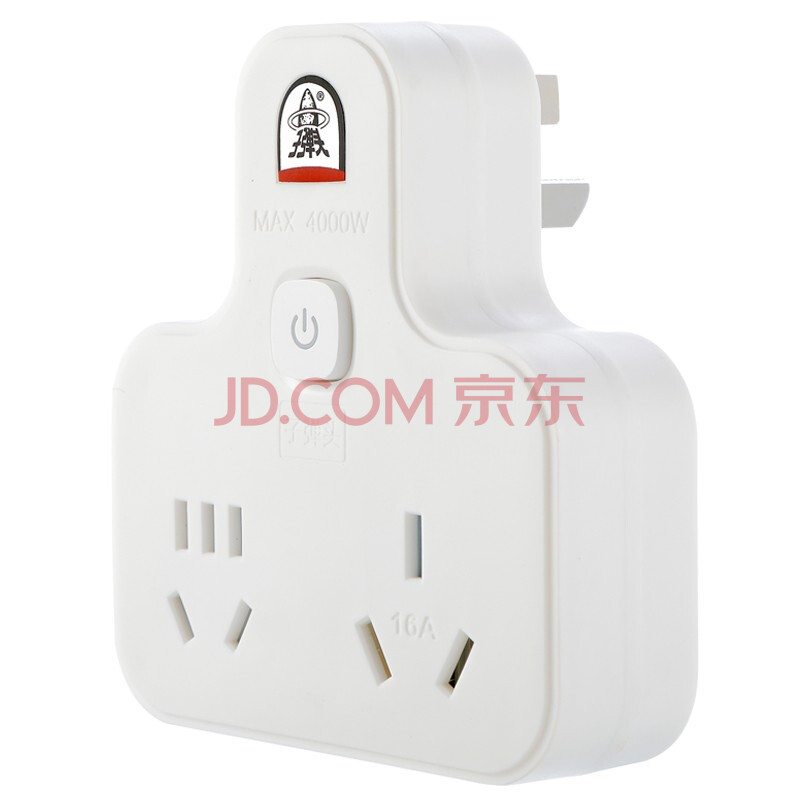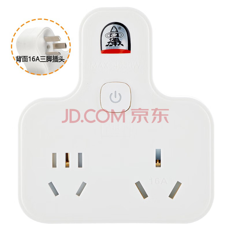 商品相册:子弹头 16A大功率一转二插座/总控开关/电源转换器/转换插头/插座转换器/2位无线插排插线板 TS-552K第
