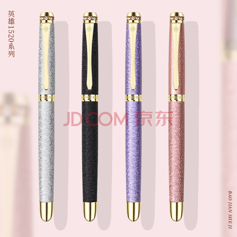 商品相册:英雄(HERO)钢笔 1520 粉色绒砂多彩细尖 男女款铱金钢笔练字笔墨水笔办公签字笔第