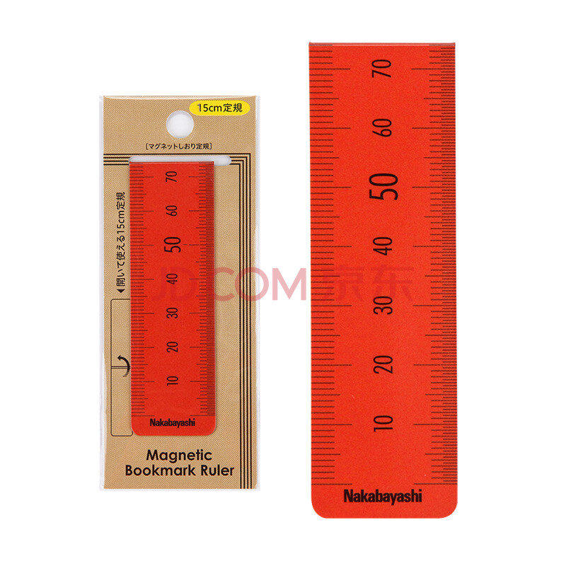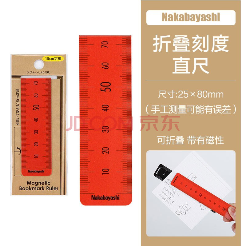 商品相册:Nakabayashi仲林15cm折叠刻度直尺磁性书签学习办公通用尺子 橘红 DBR-SO第