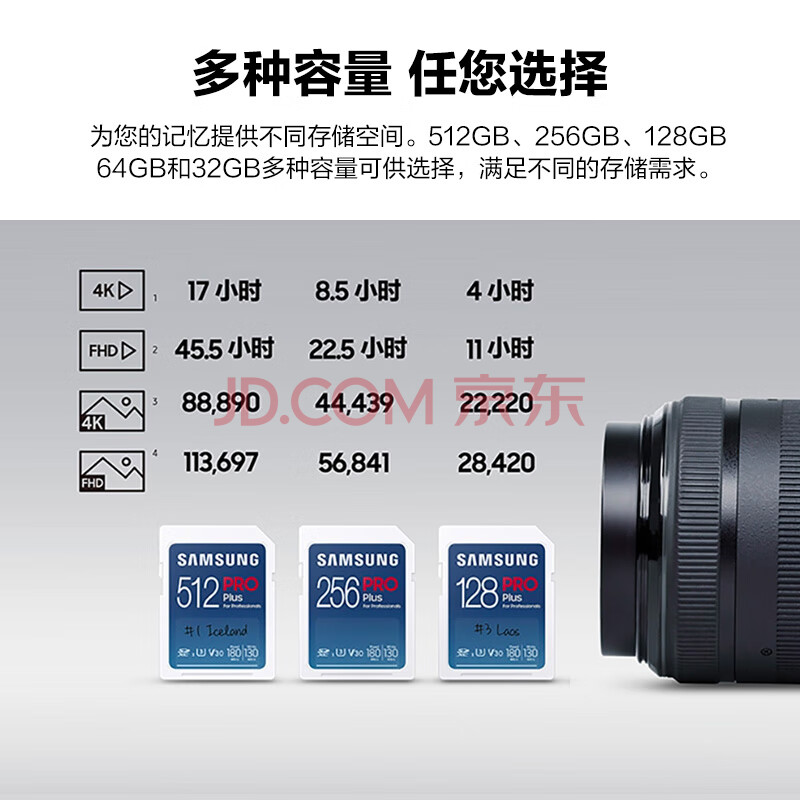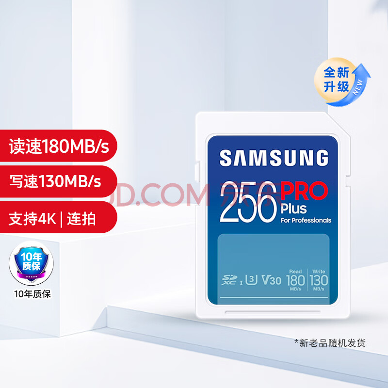 商品相册:三星(SAMSUNG)256GB SD存储卡 高速PRO蓝卡 U3SD相机内存卡支持微单/单反相机4K视频 读速180MB/s写速130MB/s第