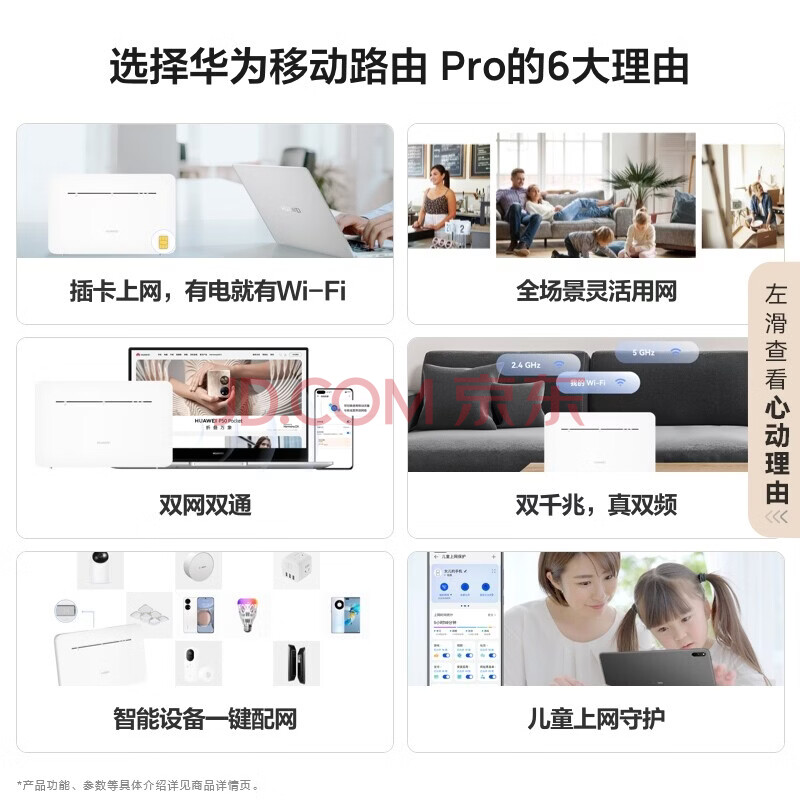 商品相册:华为移动路由Pro 天际通版年包 千兆网口插卡4G路由器 随身移动双频WiFi 外置天线接口 B535-836第