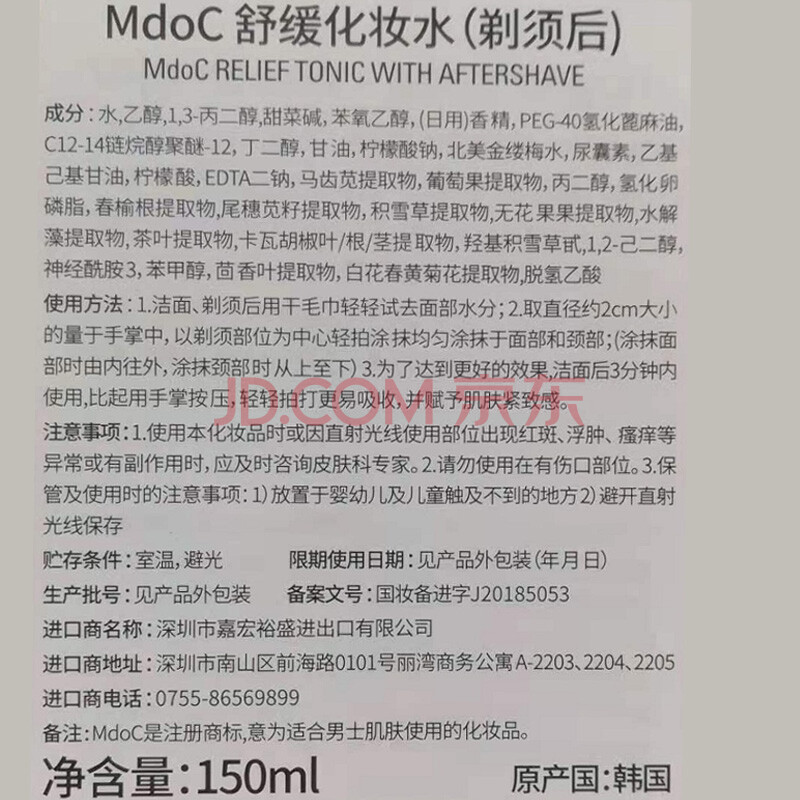商品相册:蒙度士(MdoC)男士舒缓保湿须后水150ml(韩国护肤品补水须后护理爽肤水化妆水)第1张/共6