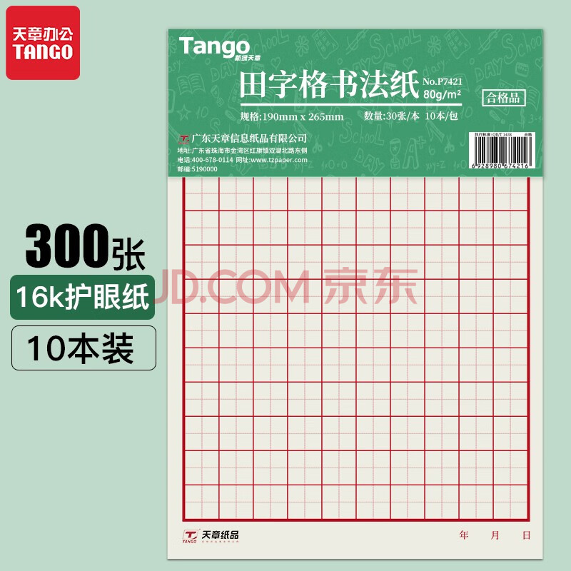 商品相册:天章(TANGO) 16K田字格硬笔书法纸练字本 田字格方格小学生钢笔专用作品纸 田字格30页 10本高中生学习神器第