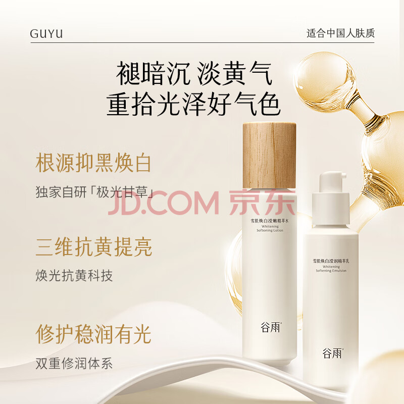 商品相册:谷雨第三代雪肌洁水乳套装美白减黄提亮补水保湿护肤品生日礼物第