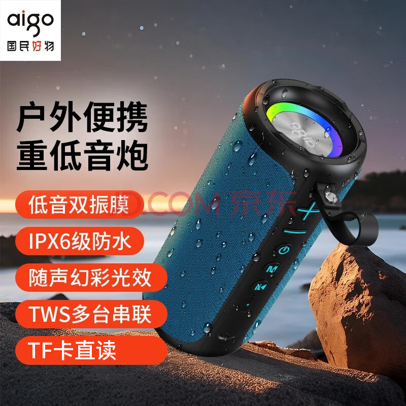 商品相册:爱国者T39升级版 蓝牙音箱家用桌面音响重低音迷你便携式户外大音量炫彩灯光超长续航低音炮防水 宝蓝色第