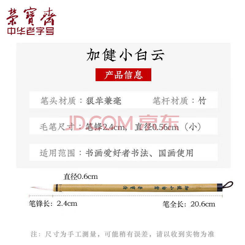 商品相册:【全网低价】荣宝斋 毛笔 兼毫白云书法练字大中小楷 文房四宝国画字帖临摹成人初学者学生入门 加健白云-小第