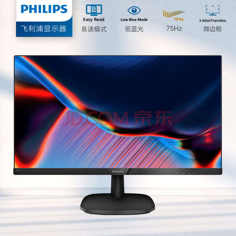 商品相册:飞利浦 23.8英寸LGD-IPS FHD75Hz TUV认证低蓝光VGA/DVI/HDMI 网课办公显示器 商务电脑显示屏 243V7QDSB第