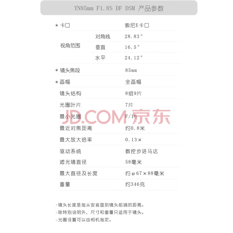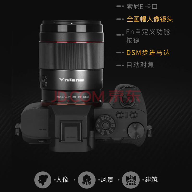商品相册:永诺YN85mm F1.8S索尼口全画幅中远摄定焦自动对焦镜头第