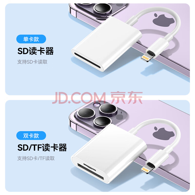 商品相册:毕亚兹 sd卡读卡器苹果多功能SD卡 免驱苹果5-14接口记录仪手机电脑ccd单反相机内存卡存储卡读卡器第