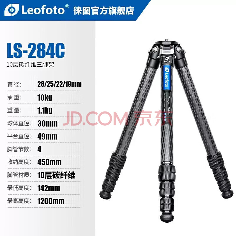 商品相册:徕图(Leofoto)三脚架 便携无中轴碳纤维摄像摄影微单单反轻便专业旅行三脚架 LS-284C(单脚架)第