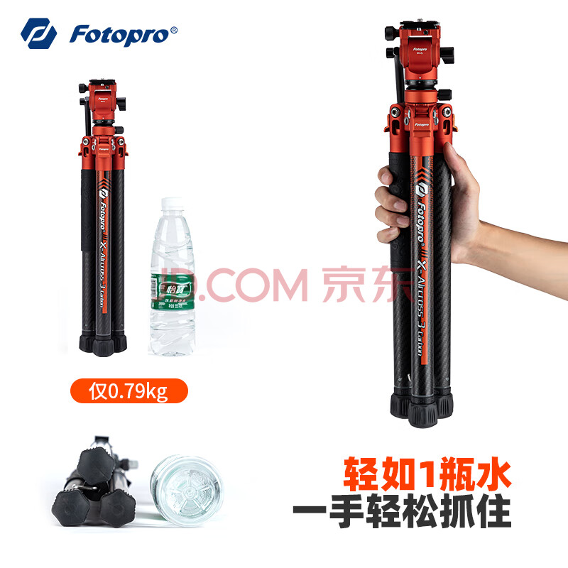 商品相册:富图宝(Fotopro)空气三号lite VIDEO液压云台碳纤维相机微单摄影摄像三脚支架 原碳灰 重/1KG 手机夹第