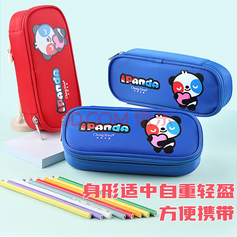 商品相册:中华熊猫系列笔袋大容量学生笔袋/多功能文具盒/蓝色单层铅笔收纳盒 六一儿童节礼物P2003-4第