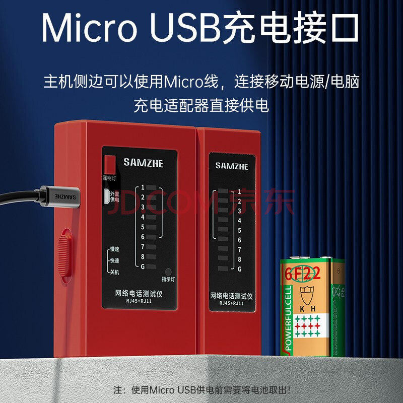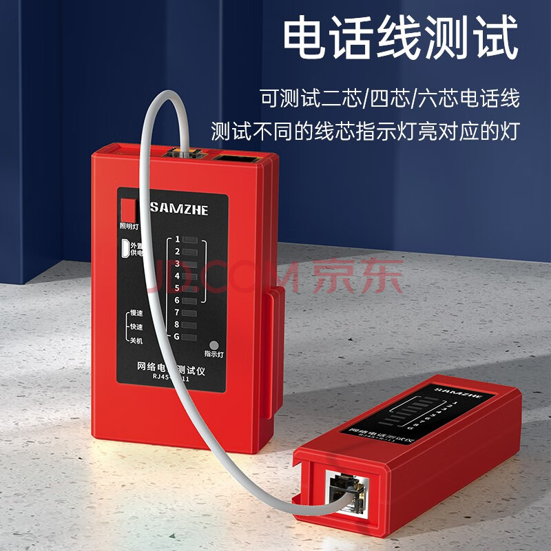 商品相册:山泽(SAMZHE)网线测试仪 多功能网络/电话测线器 网络水晶头电话线工程/家用智能检测仪器 红色 XCS-03第