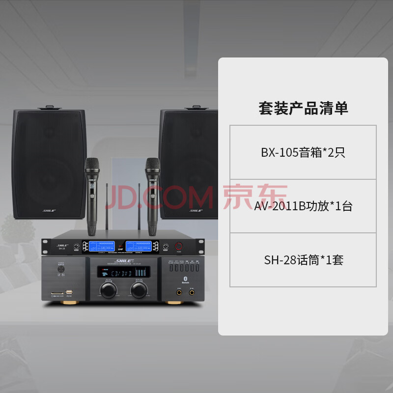 商品相册:狮乐(SHILE)小型会议室音响套装壁挂式音箱蓝牙功放U段无线话筒组合教学培训店铺音响系统设备 2011B+28+105*2第