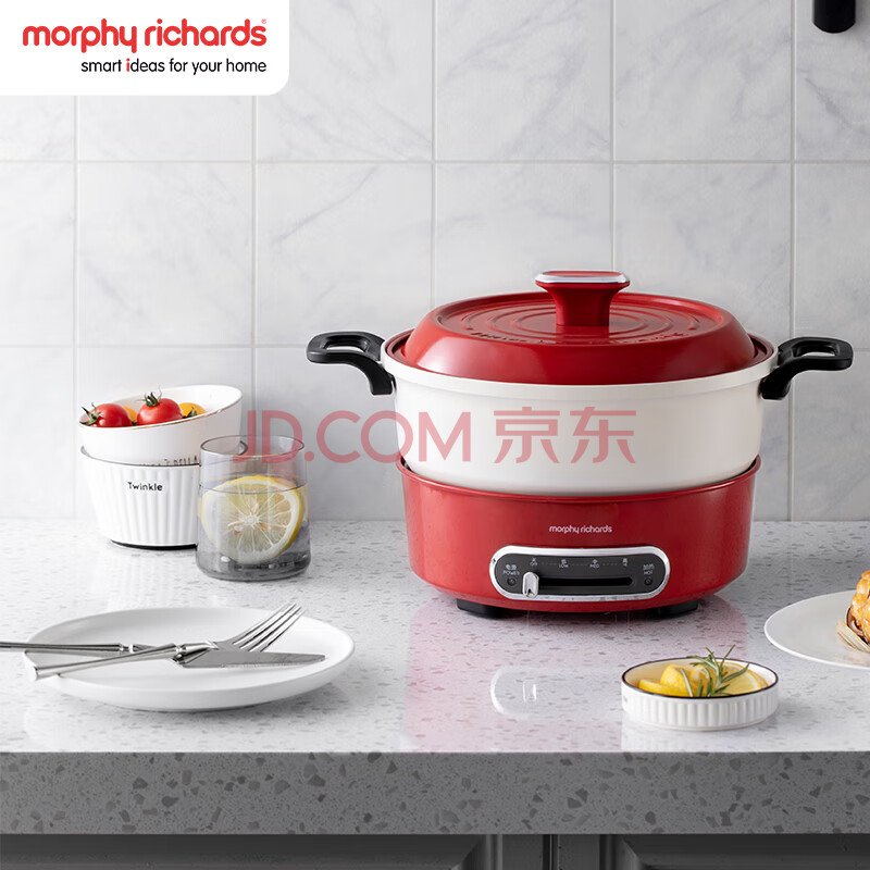 商品相册:摩飞电器(Morphyrichards)多功能锅电火锅 家用3L烤涮一体电煮锅电炒锅电烧烤料理锅 跨年圣诞礼物电热火锅锅 MR9087 英石红第